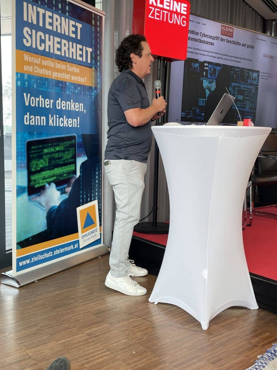 In Kooperation mit der Kleinen Zeitung, A1 Telekom Austria, NTS, Mastercard und dem Zivilschutzverband Steiermark soll das Bewusstsein für Cybersecurity geschärft werden und gemeinsam mit Expert:innen Lösungen aufgezeigt werden, die sowohl Unternehmen als auch Privatpersonen vor den immer komplexer werdenden Bedrohungen aus dem Netz schützen.