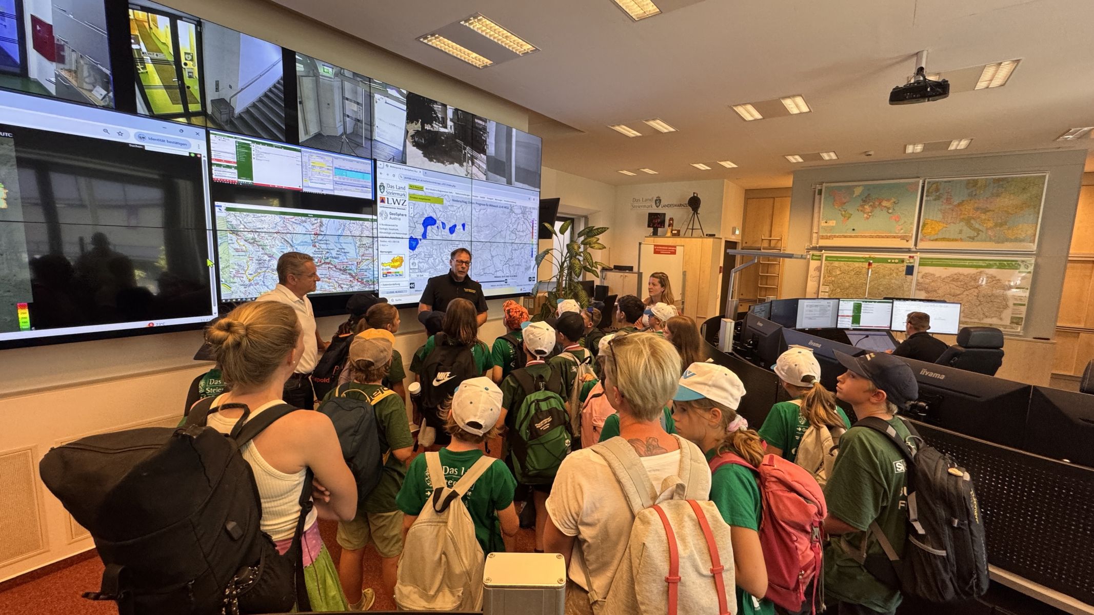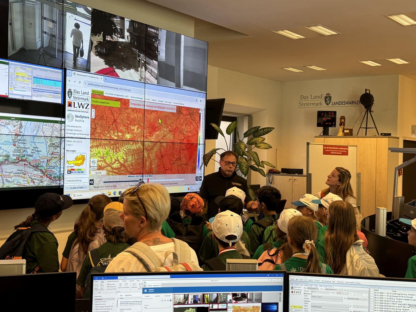 Michael Jeschelnig, Referatsleiter Katastrophenschutzmanagement und Einsatzorganisationen der Fachabteilung Katastrophenschutz und Landesverteidigung, war bei diesem Treffen ebenso anwesend und führte anschließend in die Landeswarnzentrale, wo es spannende Einblicke in den Alltag der Disponenten gab.