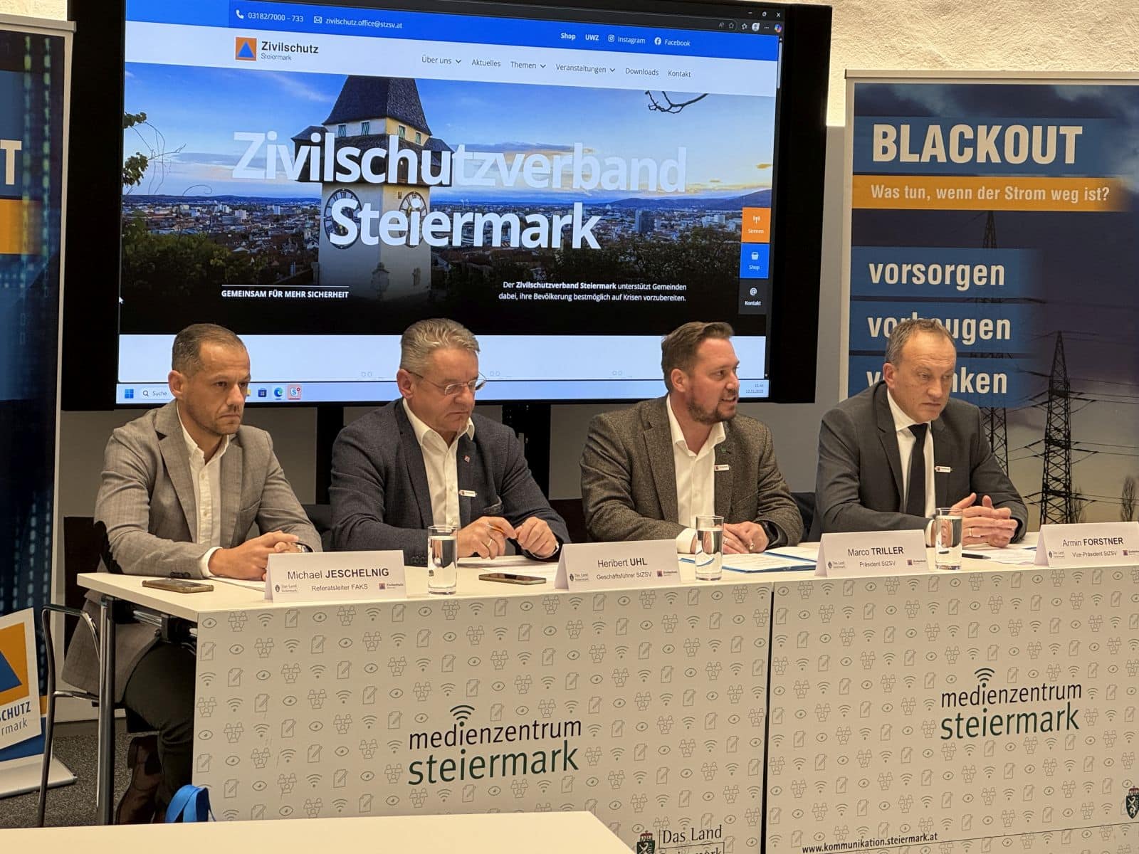 Der Zivilschutzverband Steiermark unterstützt Gemeinden seit vielen Jahren dabei, ihre Bürgerinnen und Bürger bestmöglich auf Krisen- und Katastrophensituationen vorzubereiten. Eine enge Zusammenarbeit mit dem Land Steiermark, den Gemeinden, Behörden, Einsatzorganisationen sowie zahlreichen Partnerorganisationen bildet das Fundament dieser erfolgreichen Arbeit. Um die steirische Bevölkerung künftig noch direkter und zeitgemäßer zu erreichen, präsentierte der Zivilschutzverband Steiermark heute Vormittag (12.11.2025) im Medienzentrum Steiermark seine neue Homepage sowie einen neuen Imagefilm. Beide sollen den Zugang zu wichtigen Informationen rund um Katastrophenprävention und Eigenvorsorge erleichtern.