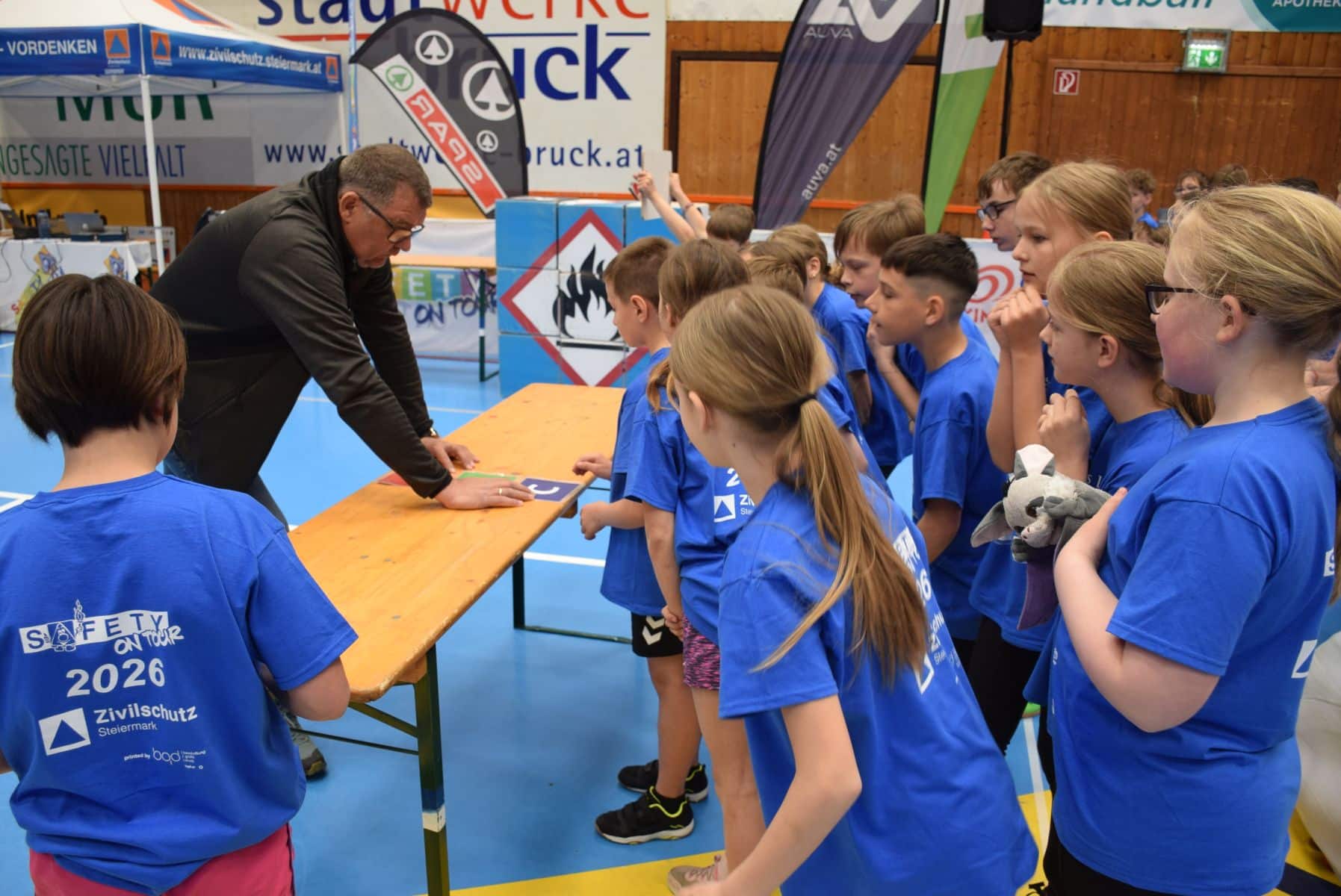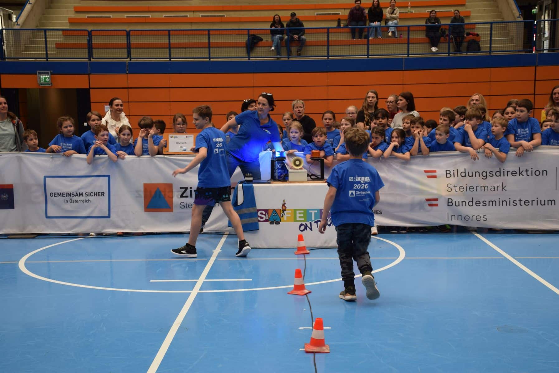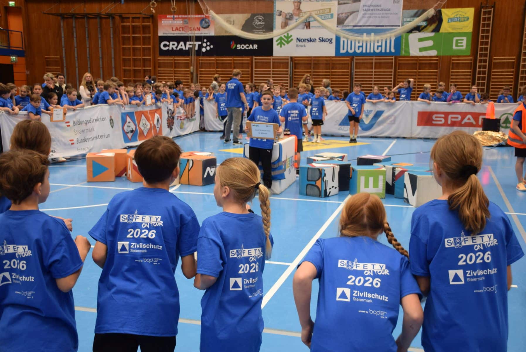 Heute, am 22.04.2026 und Tag 2 der Safety-Tour im Bezirk Bruck-Mürzzuschlag in der Hannes-Bammer-Sporthalle nahmen 15 Klassen mit 240 Schülern teil und spielten um den Tagessieg.